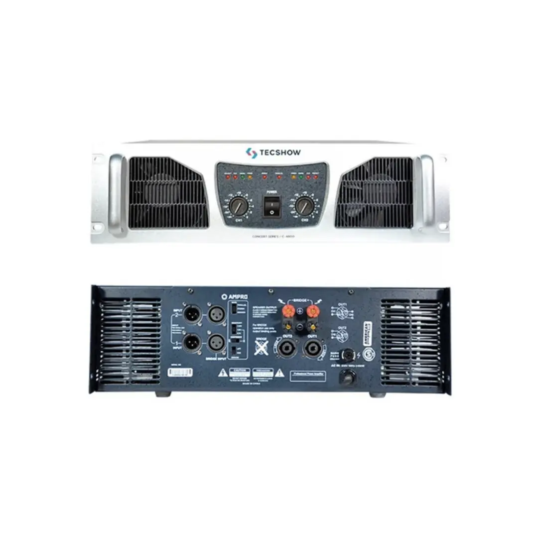 C:4800 es un amplificador con excelente calidad de sonido y una potencia de salida de 2 x 1200W @ 8-ohm / 2 x 1900W @ 4-ohm / 2 x 2400W @ 2-ohm. A su vez cuenta con un sistema de protección múltiple integrado para sus altavoces. La unidad tiene dos ventiladores de velocidad dual para mantener automáticamente la temperatura de operación interna adecuada. En el reverso el C:4800 provee conexiones de XLR de entrada y salida para ruteo de señal y conexiones speakon de salida.