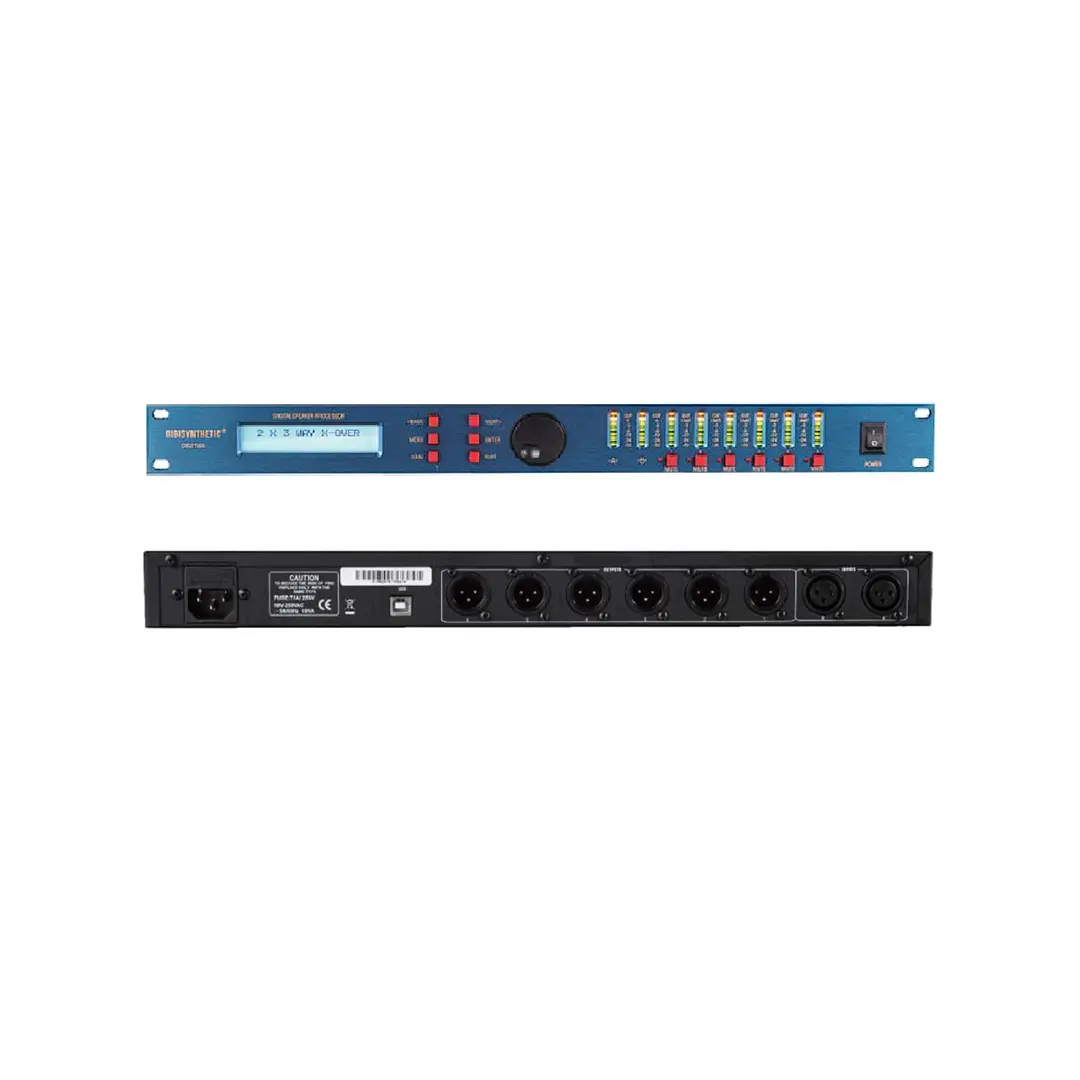 Procesador Digital con ecualizadores, crossover, niveles, Delay, lnversion de fase, compresor y limitador.