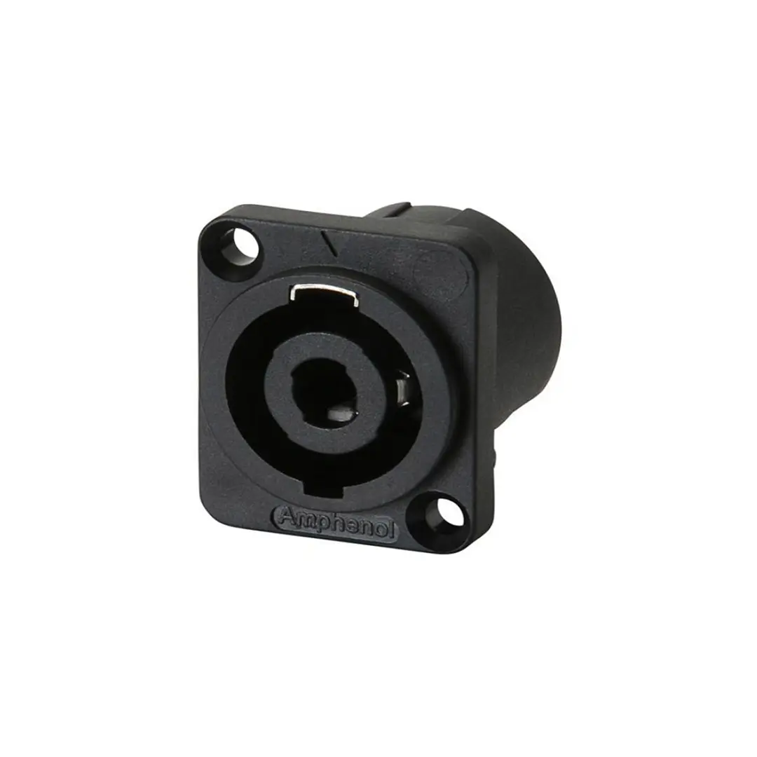El Amphenol SP4MD es un conector SpeakON macho de chasis con 4 polos, diseñado para aplicaciones de audio profesional que requieren una conexión segura, de alta corriente y libre de interferencias, como parlantes, amplificadores y sistemas PA.