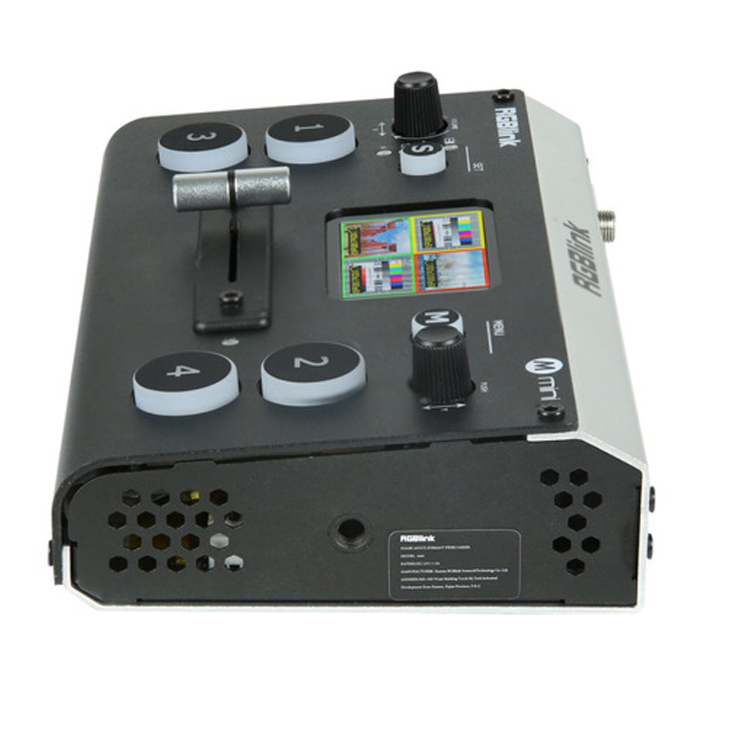 RGBLINK Mini es el switcher de audio y video de 4 entradas, ideal para aplicaciones de transmisión en vivo y presentaciones, permitiéndote usar varias fuentes para siempre dejar una impresión profesional.